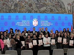 U Palati „Srbija“ svečano su uručeni sertifikati polaznicama koje su uspešno završile obuke za ručno tkanje, necanje i vez, zanimanja koja se ubrajaju u deficitarna u Republici Srbiji.